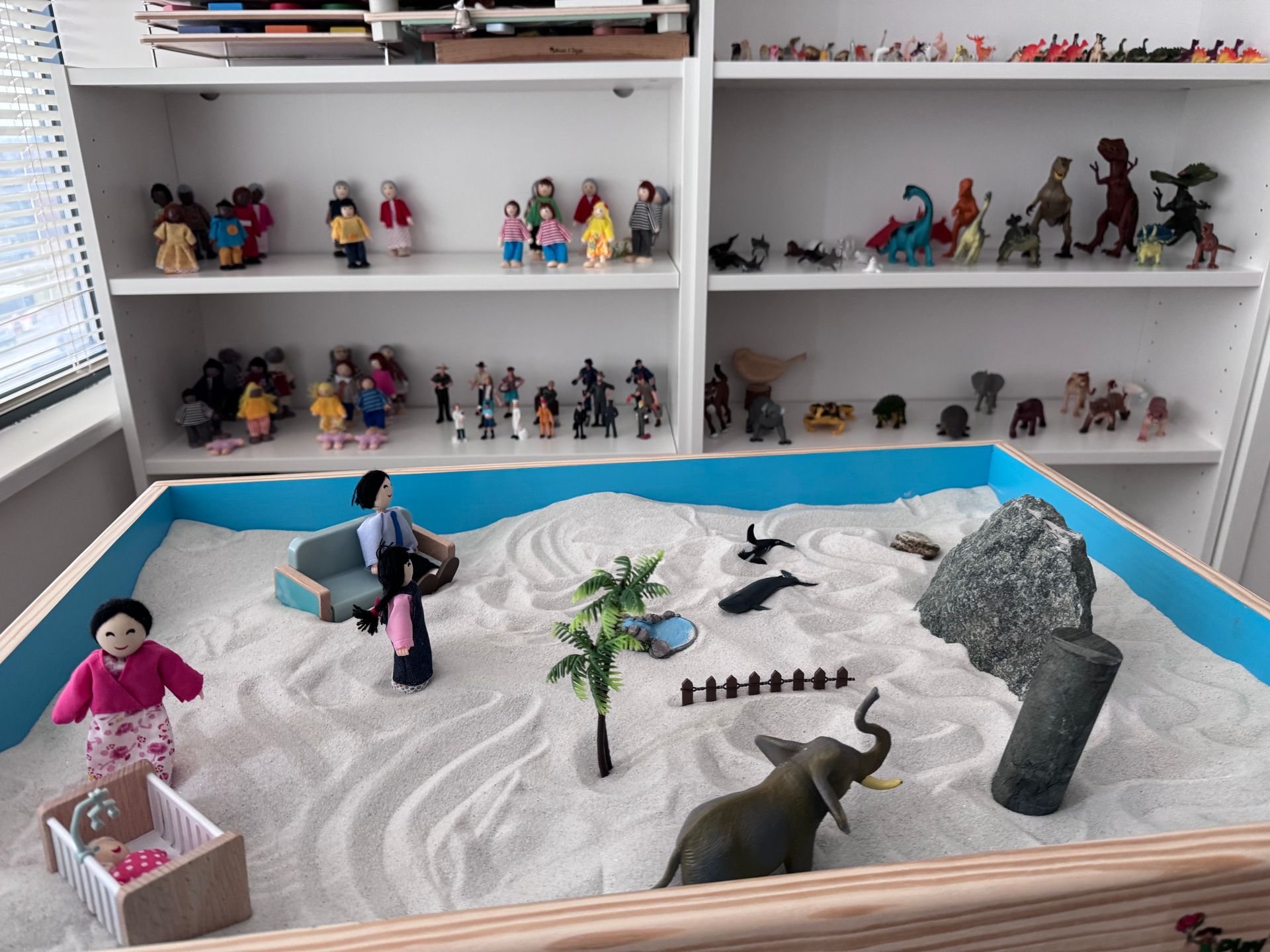 In this space children, teens, and families feel seen, safe, and free to explore big feelings through play. We use a wide range of thoughtfully chosen materials, including sandtrays, miniatures (families, animals, symbolic figures), art supplies, dollhouses, fidget tools, costumes, puppets, and board games, each selected with purpose that supports more than expression. They help clients regulate emotions, calm the body, and process overwhelming experiences.